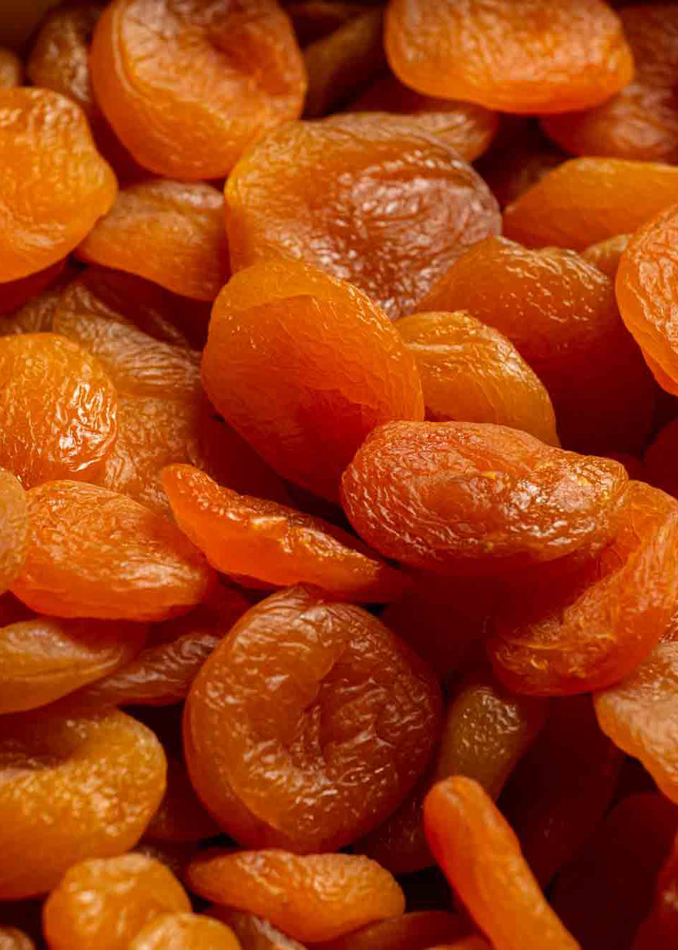 Los orejones de albaricoque son una fruta desecada con alto contenido en fibra, calcio, hierro y vitaminas A y C.